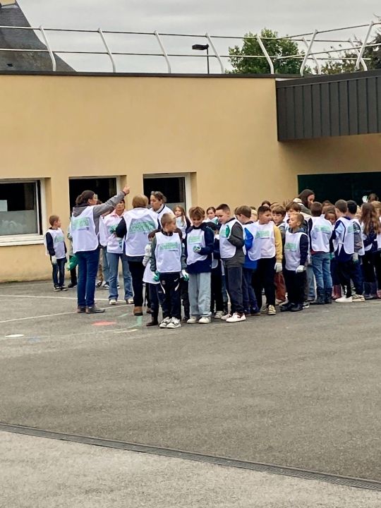 Vendredi 26 septembre, les élèves de cycle 2 et de cycle 3 se sont dispersés dans Montauban de Bretagne pour aller nettoyer la nature. Munis de sacs et de gants et repérables à leurs dossards blancs, ils ont récupéré divers déchets que les services techniques de la mairie (merci à eux !) ont récupérés et pesés : en tout 20kg ont été ramassés.