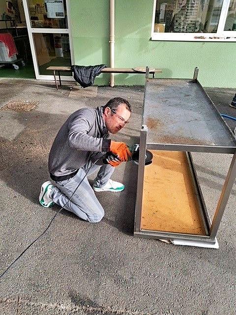 L'arrière cuisine, les espaces de stockage, les vestiaires et lingerie ont été redéfinis. Les finitions (pose d'étagères, de distributeur de savon...) ont été assurées par les parents.