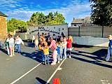 En début de matinée, les élèves ont été répartis dans les maisons de couleurs qui mélangent les niveaux, des TPS aux CM2. Ils ont pratiqué des activités sportives dans le cadre de "Ma rentrée avec l'UGSEL" qui nous a proposé cette année le thème "Bouge avec ta région". Cette rencontre coopérative développe l'entraide et permet aux enfants d'apprendre à se connaître.